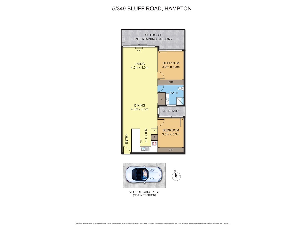 Both bedrooms are well-sized and offer fitted wardrobes, the master opens to the main balcony, whilst the second bedroom offers alfresco access of its own to a atrium. A central bathroom, Euro laundry, split system heating and cooling, plus secure parking are also offered.