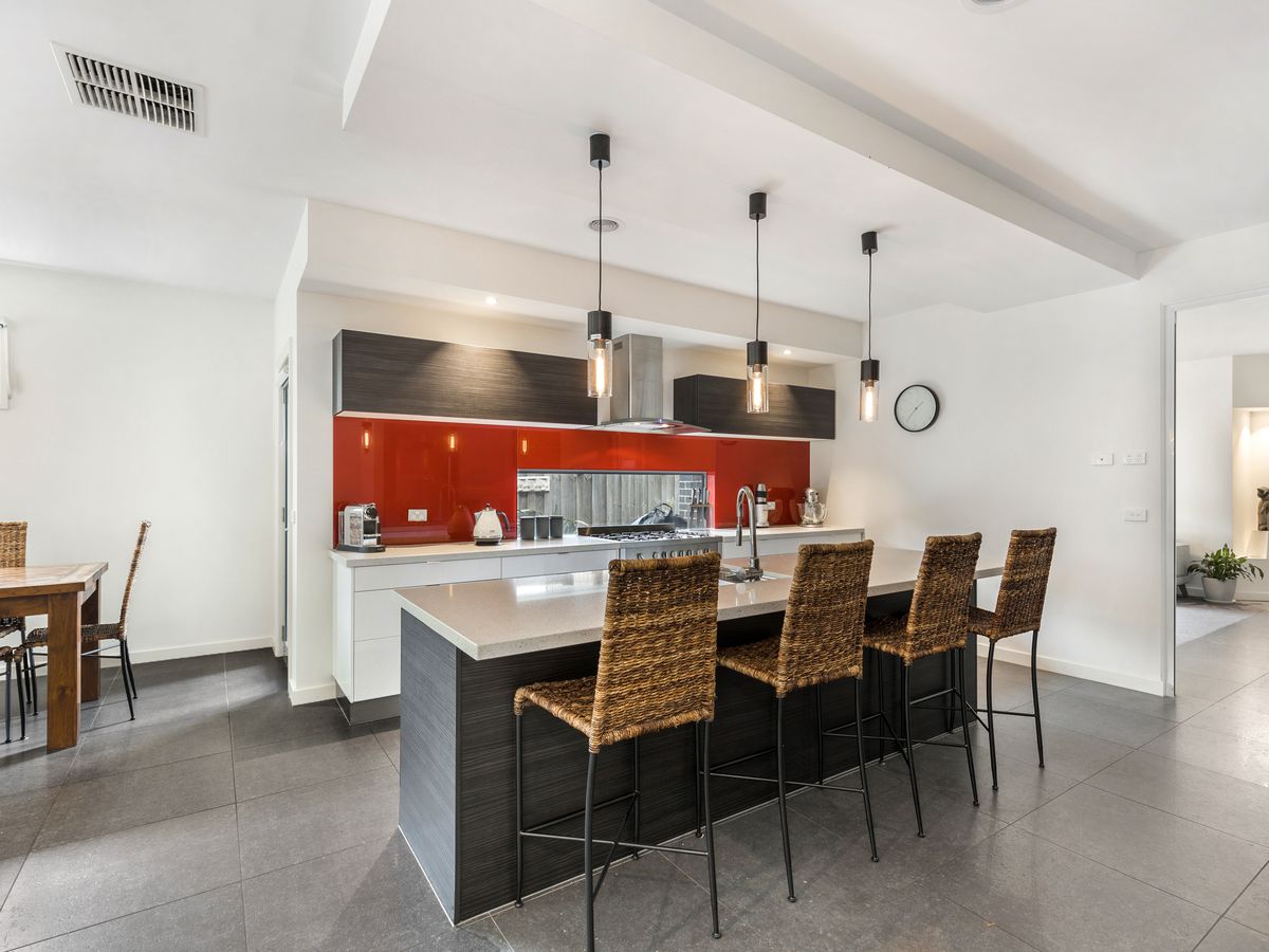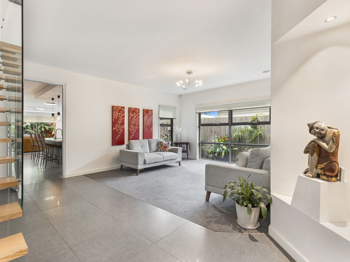 bathroom residence promises a lifestyle of effortless living in this popular seaside suburb. You’ll be spoilt with the abundance of space on offer, with three dedicated living zones along with a separate study, upstairs study nook and relaxing outdoor sanctuary. The sublime stone kitchen will impress with its 900mm oven, gas cooktop, double draw dishwasher and walk-in pantry, whilst open plan living and dining enjoys a cosy gas fireplace and extends to a sunny alfresco deck with automated awning for year-long entertaining amongst tropical inspired garden surrounds. Upstairs reveals another living zone with vaulted ceilings and skylights, along with three bedrooms fitted with built-in wardrobes; the main bedroom with an elegant ensuite, plus blissful family bathroom with separate bath and shower. Features plantation shutters, guest powder room, walk-in showers, zoned ducted heating, evaporative cooling, Omni smart home automation including a multi-room audio system and remote single garage behind an auto gate with 2 further open car spaces. Located steps to the local milk bar and buses, a short stroll to delicious coffee, Parkdale Plaza and walking distance to vibrant Mordialloc Village, the train and beautiful beaches. Located in the sought after Parkdale Secondary College zone.
