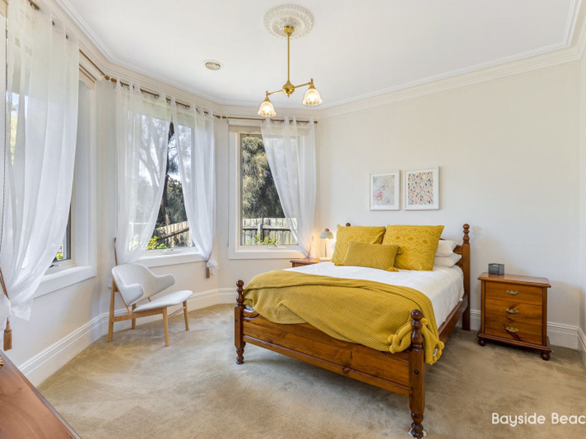 Nestled in a tightly held beachside pocket and blending timeless charm with all the comforts of modern living, this captivating two bedroom beauty is perfectly positioned for a lifestyle of convenience close to it all. Beyond the picturesque façade, this welcoming home will leave a lasting impression with its decorative high ceilings and rich warm engineered floorboards, alongside the comfort of double glazed windows, ducted heating and an oversized double auto garage with rear roller door (access via Kirk Lane.) Set off the long hall, is a divine main bedroom with lush garden views, a walk-in robe and semi-ensuite, and an additional spacious bedroom (BIR). Exuding elegance and infused with natural light, the open plan lounge and dining area will impress, accompanied by an impeccable stone topped timber kitchen with breakfast bench. Sliding doors extend the space to a fabulous paved courtyard with a BBQ gas point and sunny northern aspect ideal for summer and winter entertaining. Well-appointed with air conditioning, a dedicated laundry with separate second toilet, and the appeal of no body corporate. Move in and enjoy the best of Bayside living, with pristine stretches of sea and sand, an elite school district, popular eateries, parks and the train all at your fingertips.